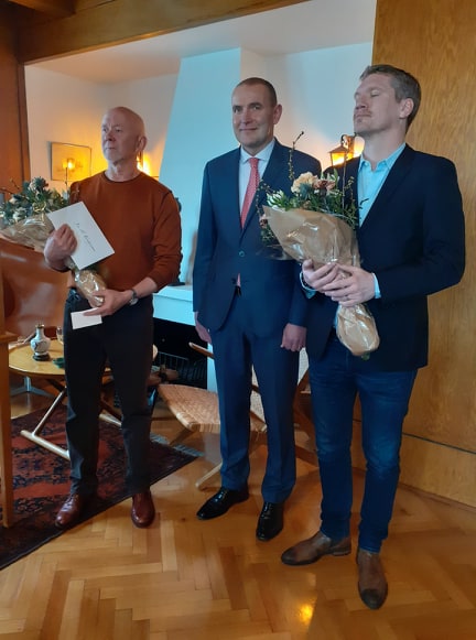 Jón Stefán Kristjánsson, þýðandi, Guðni Th. Jóhannesson, forseti Íslands og Egill Örn Jóhannsson, framkvæmdastjóri Forlagsins