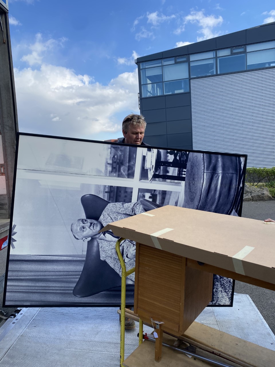 Pär Ahlberger og Guðný Dóra safnstjóri með plakatið fína.